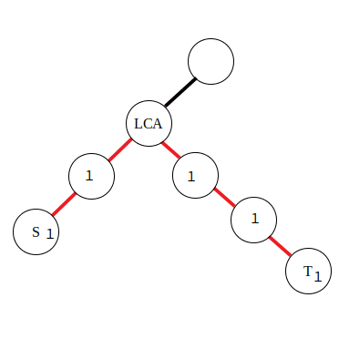 对于一次 \(\delta(s,t)\) 的访问,需要找到 \(s\) 与 \(t\) 的公共祖先,然后对这条路径上的点进行访问(点的权值加一),若采用 DFS 算法对每个点进行访问,由于有太多的路径需要访问,时间上承受不了。这里进行差分操作: