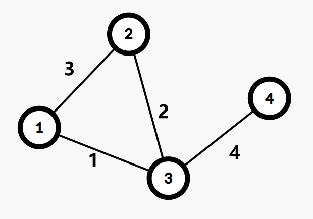 & \text{ denoting that there is an edge between } u \text{ and } v \text{ weighted } w . \\